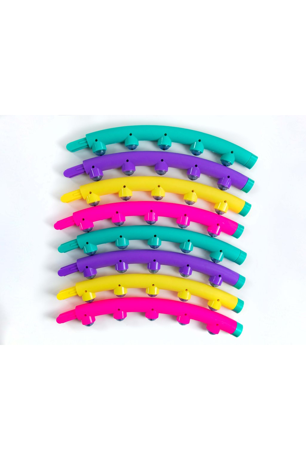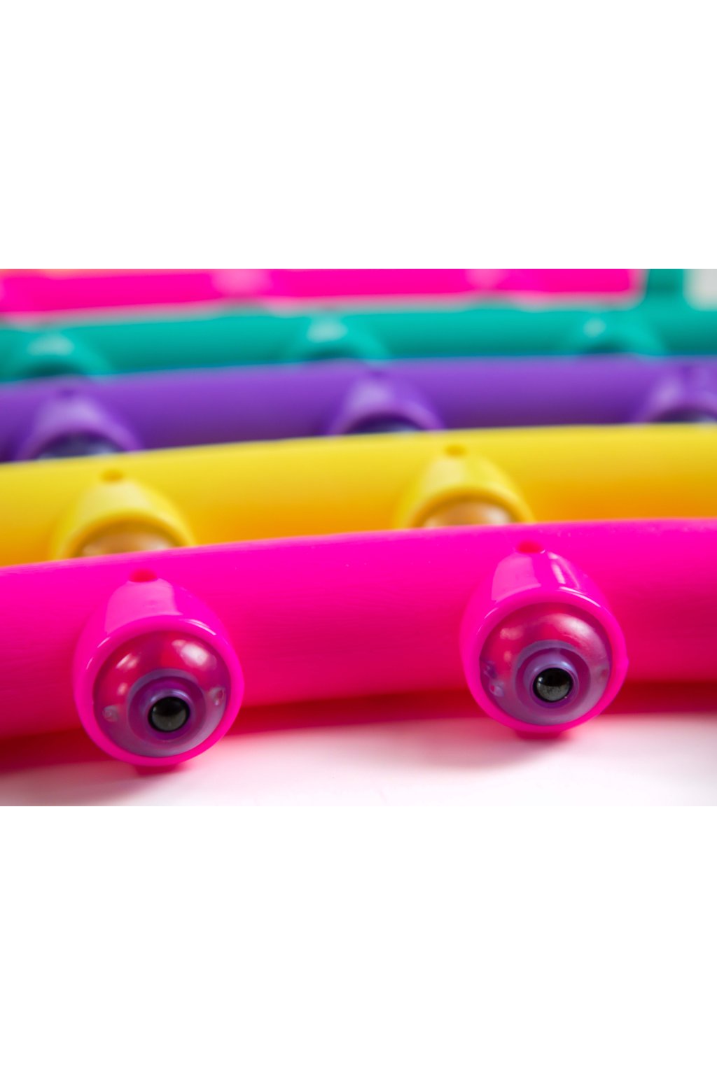 Masážní obruč Hula hoop s průměrem 98 cm má po obvodu rozmístěné měkké masážní kuličky, které během cvičení stimulují břišní a zádové svaly, boky či hýždě. Záleží tedy jen na vás, jak nízko tuto Hula hoop na svém těle spustíte a jaký masážní zážitek si tak připravíte. Díky tomu, že je masážní obruč skládací, ji snadno uskladníte i v menších bytech a hodit se vám bude i při cestování.