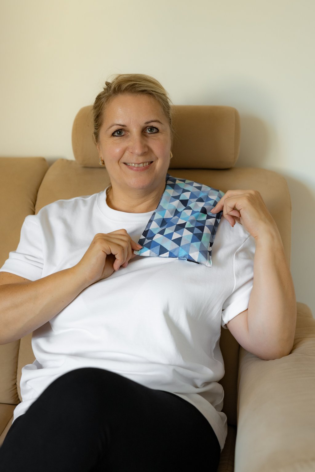 Po úspěšném nahřátí přiložte třešňový polštářek na část těla, kterou potřebujete prohřát. Relaxační účinek tepla můžete ještě podpořit jemným třením nahřívacího polštářku o pokožku. Teplota polštářku v průběhu nahřívání neklesá pod teplotu těla.