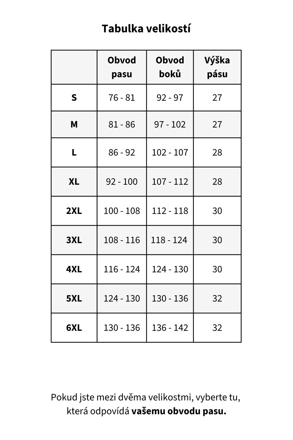 | Velikost | Hrudník | Pas |