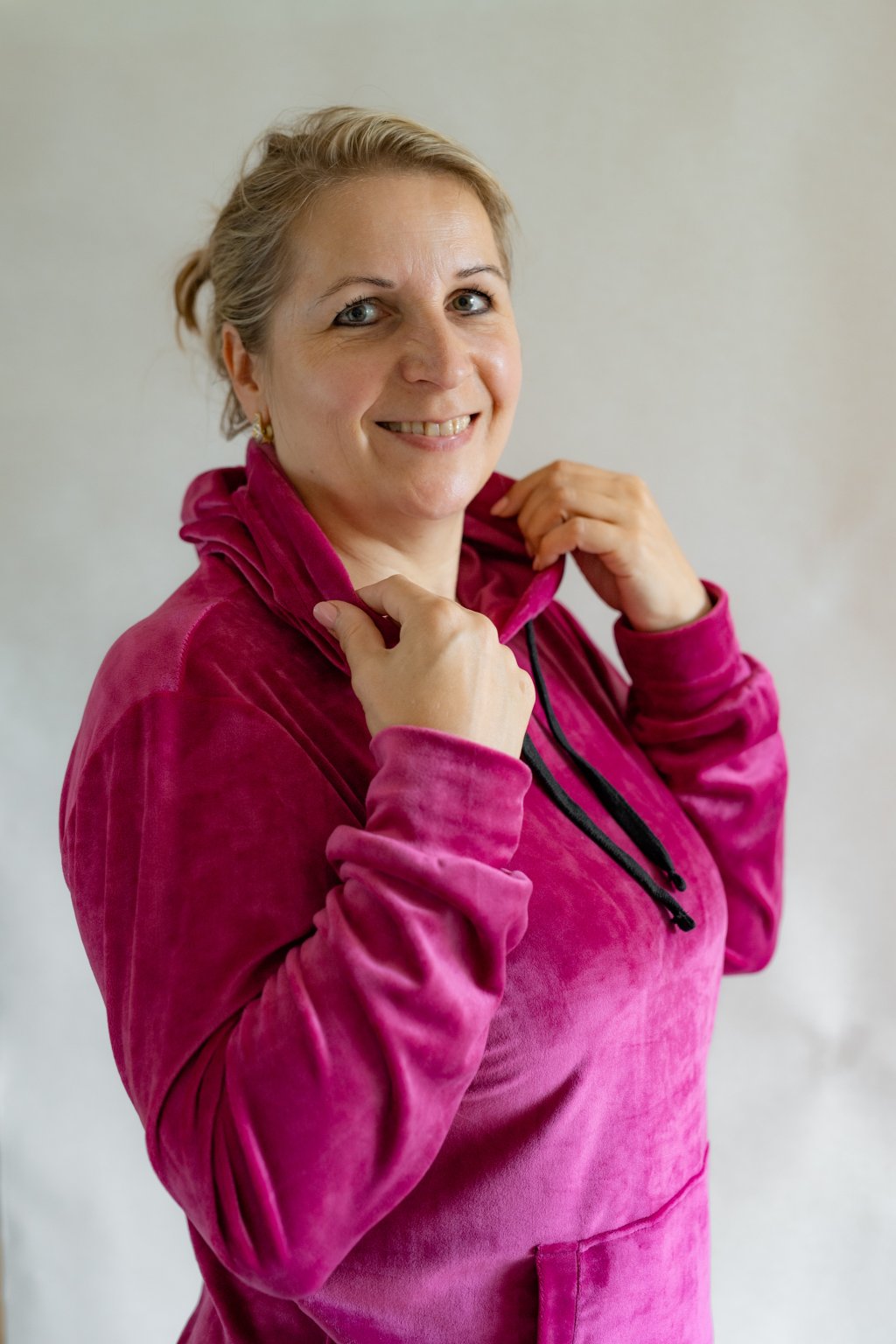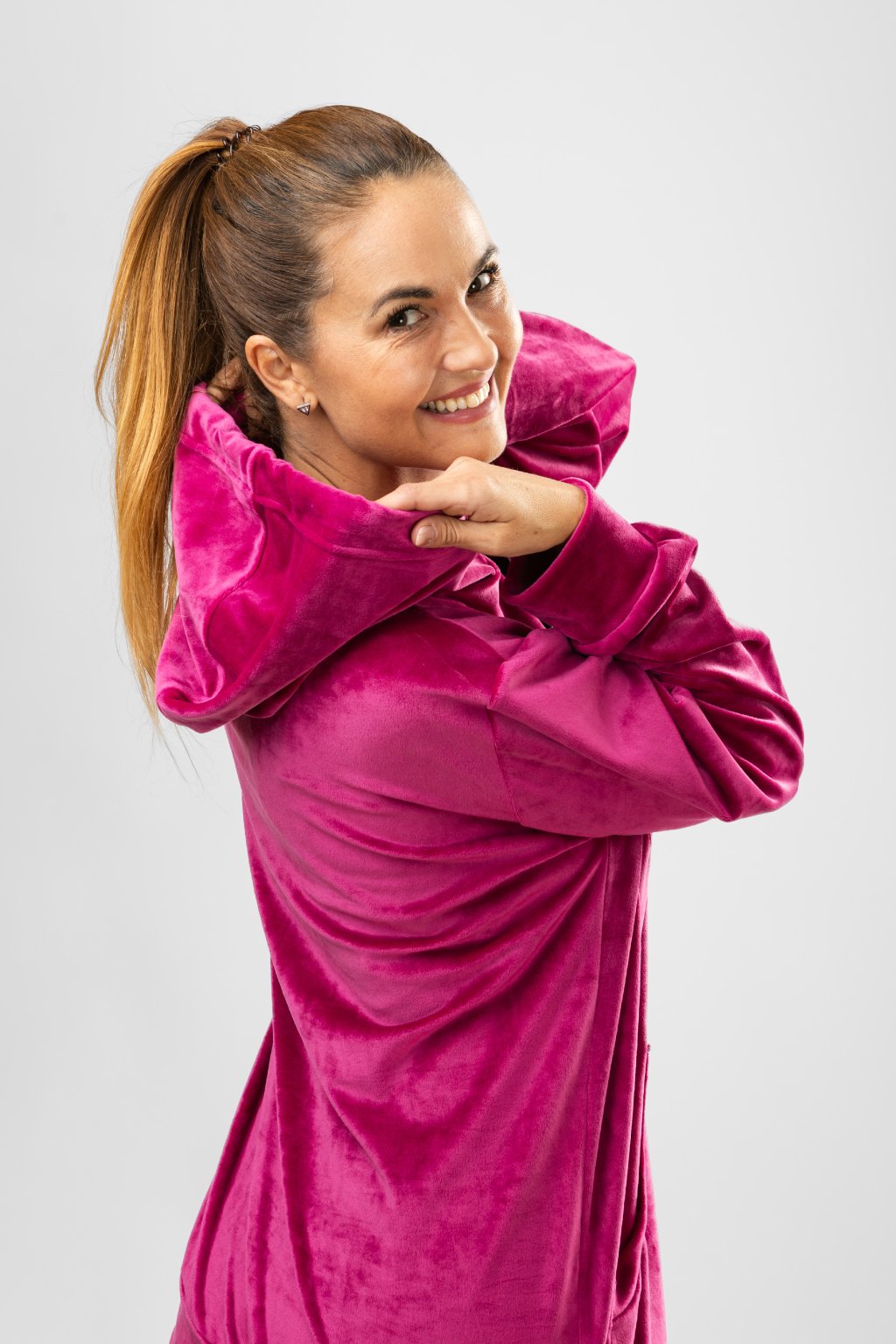 Užijte si komfort v sametové mikině ve které můžete ležet na gauči nebo vyrazit do města.