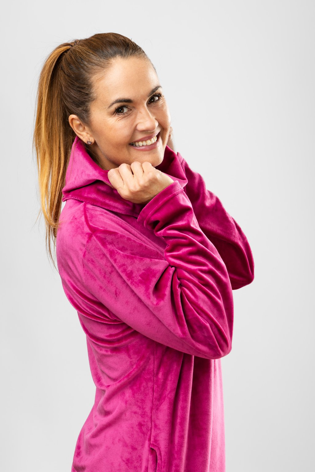 Užijte si komfort v sametové šatech ve kterých můžete ležet na gauči nebo vyrazit do města.